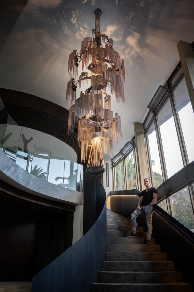 A multi-tier Enchanted Faraway Tree chandelier by Cape Town lighting studio willowlamp anchors the interior of Boscheuvel House — a striking residential project by Matter Studio in the leafy suburb of Bishopscourt. The bespoke sculptural chandelier transforms the home’s double-volume stairwell into a dramatic moment of arrival, blending architectural art with handcrafted light.